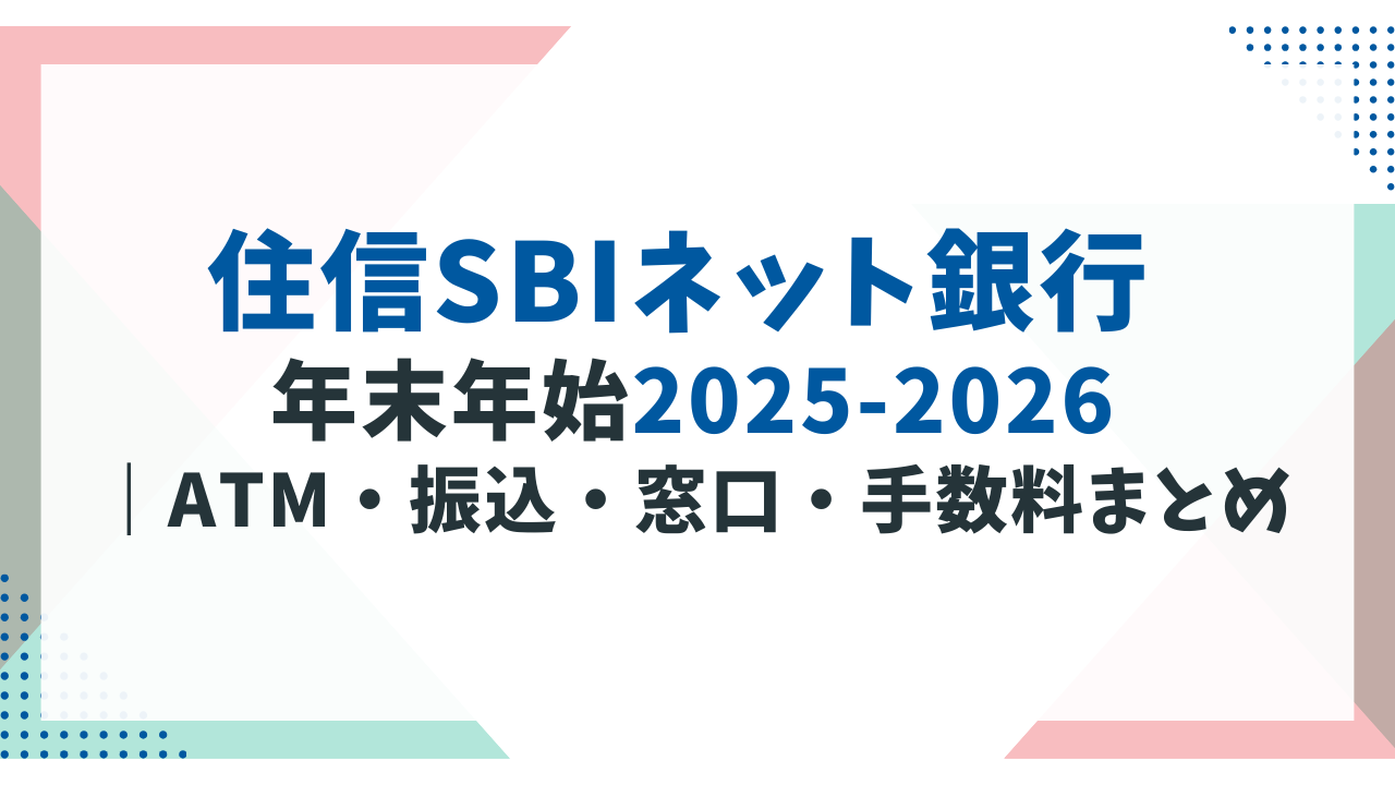 本記事では、2025年〜2026年の年末年始における、住信SBIネット銀行のATM利用・振込反映・サポート対応・手数料について、公式情報をもとにわかりやすくまとめています。